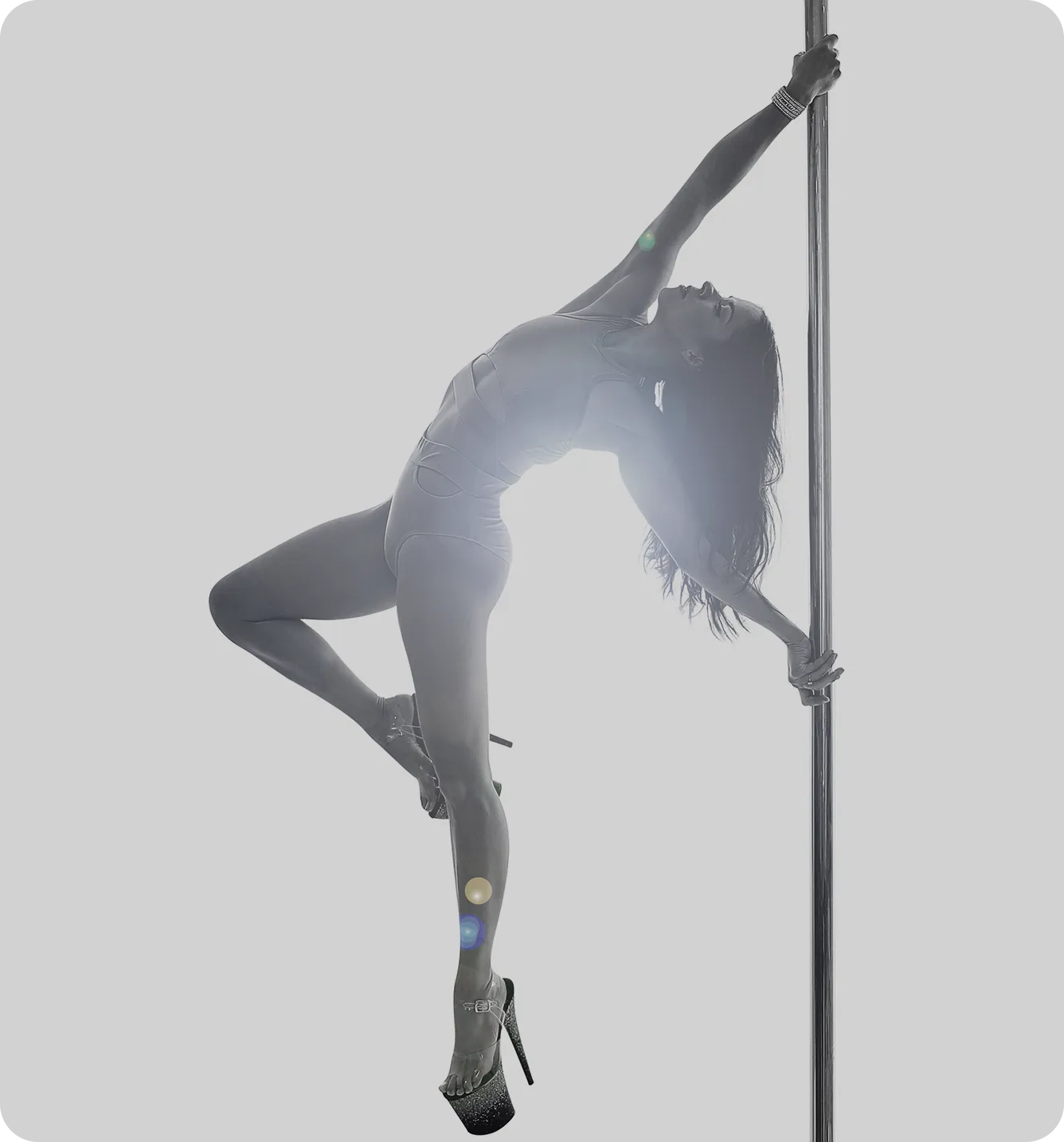 For your first pole class, we recommend wearing shorts, a tank top, and bare feet, since skin helps you grip the pole safely. Also lay off the lotion before a Pole class. It will help you with grip. If you’re attending an aerial class, leggings and a t-shirt or long-sleeve top are best to protect your skin. For strength, flexibility, or conditioning classes, any comfortable activewear works, and you can choose barefoot or athletic shoes. Please remove all jewelry before class to keep you and the equipment safe. We also recommend bringing water, and many students like to use grip and knee pads, and perhaps you’d like to try some beautiful heels which are available in our boutique.